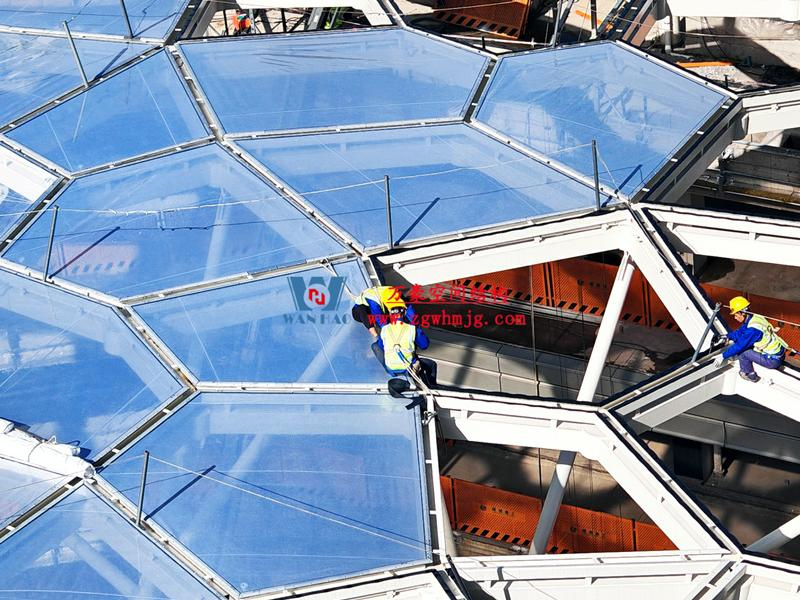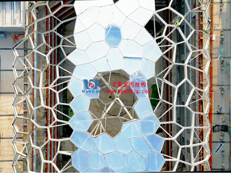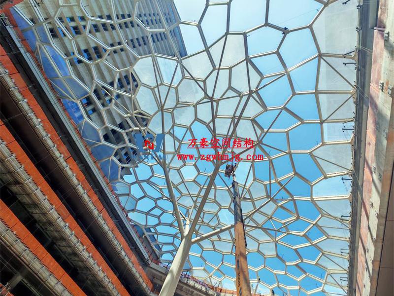 安吉縣昌碩小區(qū)地塊房產(chǎn)開發(fā)項(xiàng)目鋼結(jié)構(gòu)天幕項(xiàng)目,該項(xiàng)目用鋼量約260噸,ETFE膜展開面積約3182平米。