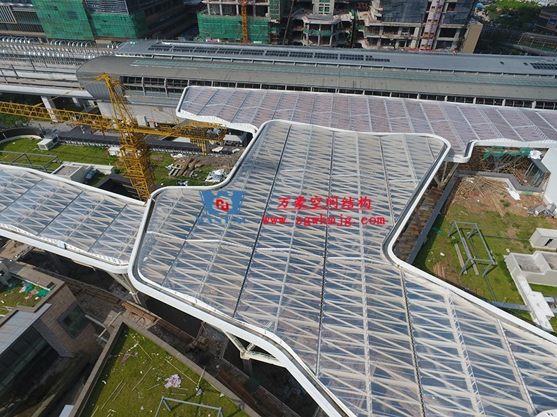 深圳龍華地鐵站ETFE天幕項(xiàng)目由我公司負(fù)責(zé)設(shè)計(jì)及承建,項(xiàng)目由4個(gè)出入口單體組成,ETFE展開面積9000平米,二次鋼結(jié)構(gòu)120噸,結(jié)構(gòu)落柱采用目前最流行的樹形節(jié)點(diǎn)支撐,在結(jié)構(gòu)安全的同時(shí)更具層次感。同時(shí)該項(xiàng)目也完美突出了ETFE膜材高透光、高自潔性及耐高溫的優(yōu)點(diǎn)。