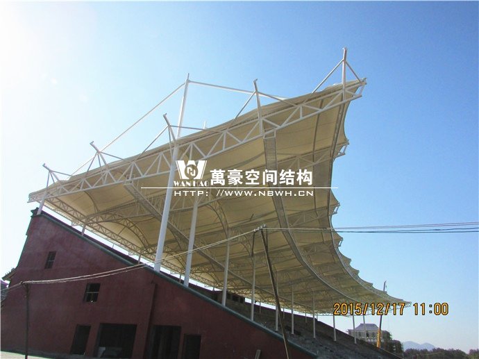 龍泉市體育場鋼膜結構工程位于浙江省麗水市龍泉市大沙曾家張家區塊,該項目用鋼量200噸,膜結構展開面積3000平米。