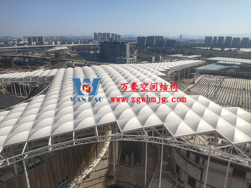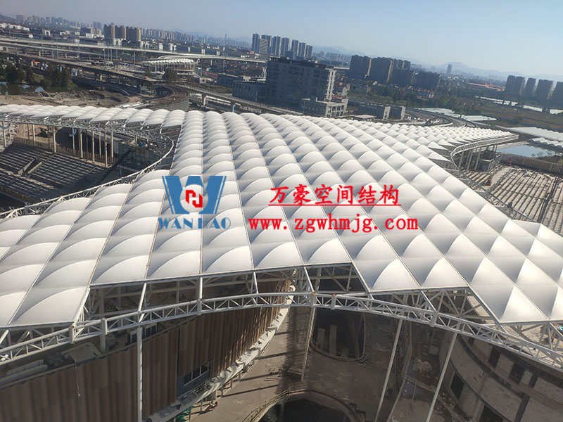 杭州亞運會棒(壘)球體育文化中心項目位于浙江省紹興市,總建筑面積16萬平方米、總投資約18億元。該項目頂部材料選用高自潔PTFE膜材,膜結構展開面積合計20000平米。