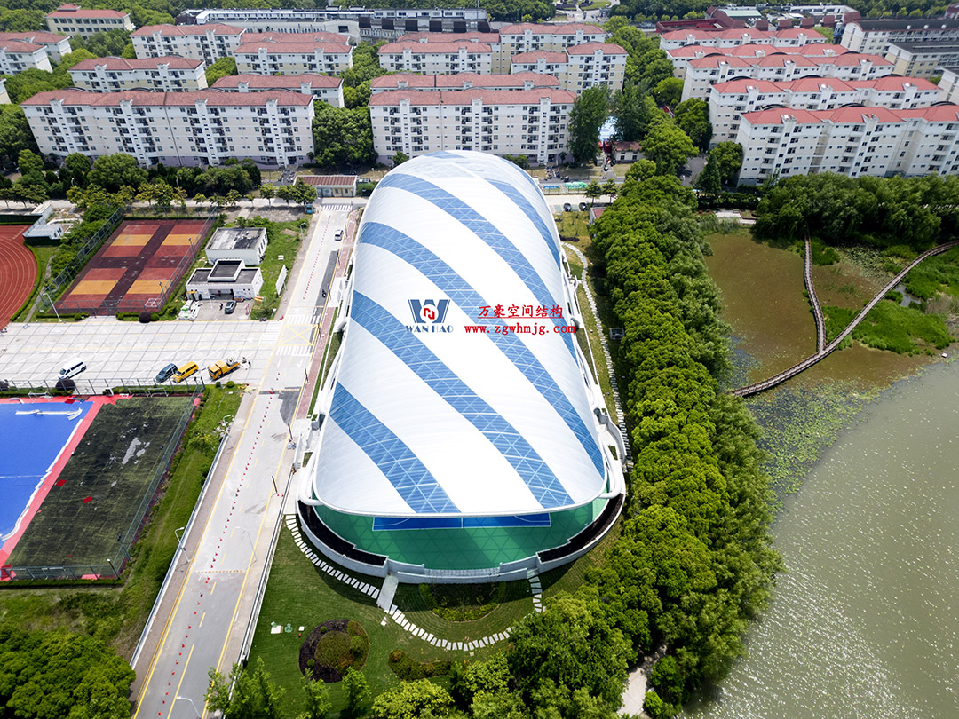 上海工程技術大學松江校區風雨操場膜結構位于上海市松江區大學城,該項目ETFE膜結構展開面積約7000平米。